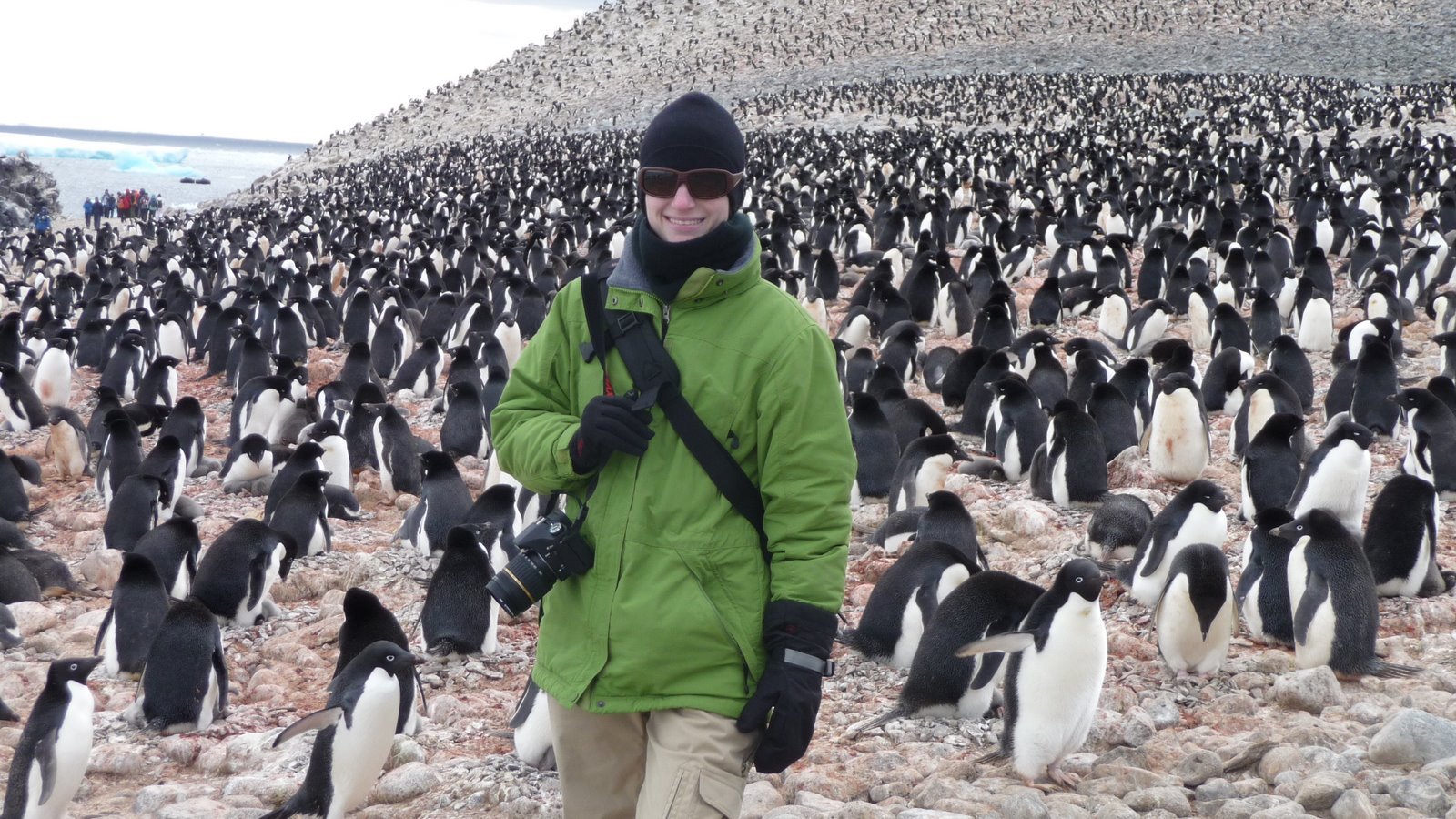Penguins everywhere! There I am at the edge of an adelie penguin colony