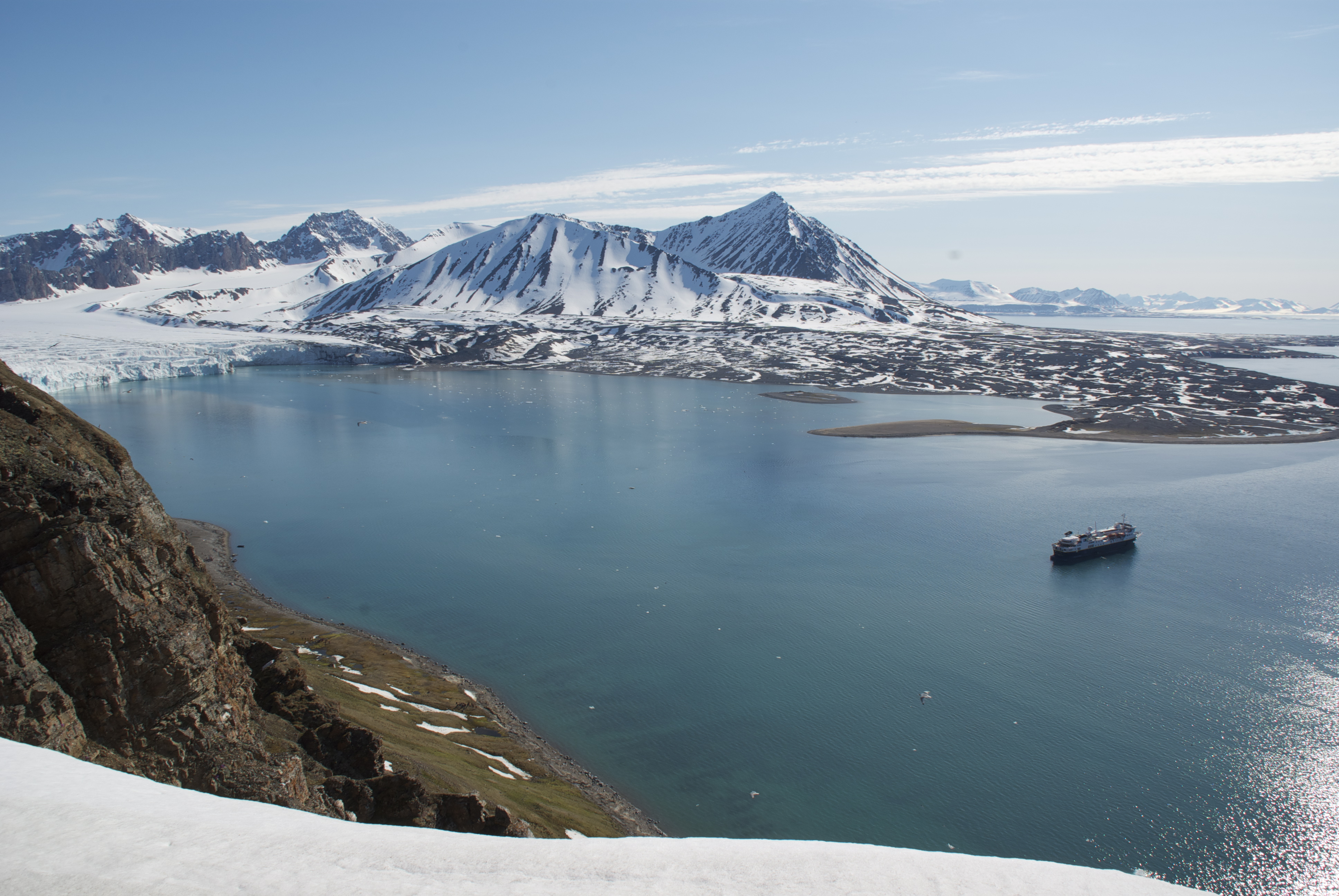 The Arctic, Svalbard Archipelago. A short, steep guided hike provided a stunning view, including our boat